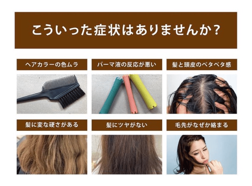 それら残留物はヘアカラーやパーマの弊害となり、髪にすっきりしない重さと硬さをもたらします。